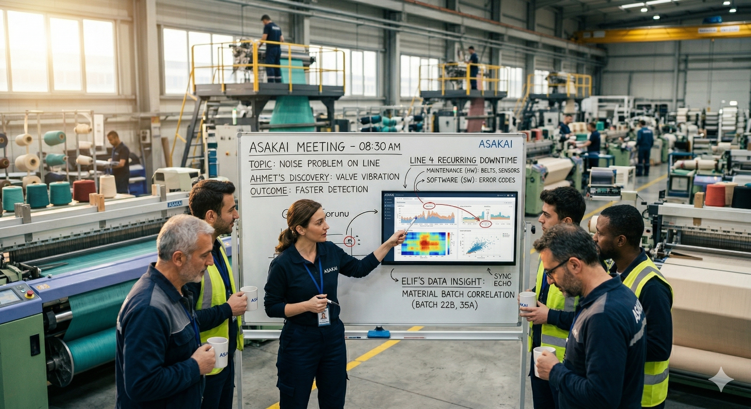 During today’s Asakai meeting, we were tackling the recurring downtime on Production Line 4. The maintenance team viewed it as a hardware failure, while the software team insisted it was a parameter error. As the debate dragged on, Elif, our process engineer who supports both teams, stepped in. She pointed out a subtle correlation on the data analytics screen: the stoppages only occurred when a specific batch of raw material was fed—the exact moment where hardware and software fell 'out of sync.' At that moment, we realized the problem wasn't in one department or the other, but in the thin 'echo' of their interaction. By the time the meeting ended, both teams had united to develop a joint solution; they were no longer sharing a problem, but sharing the success.